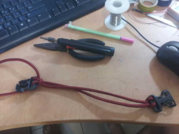 1) agujetas (el tamaño del cuello de mi perro es alrededor de 35 cm usé cordones de 2 x 2 metros).