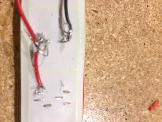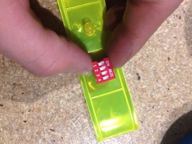 Ahora agrega el apagador. Clávalo en la cinta reflejante como los leds, y conecta el de en Positivo de los leds a una patita del apagador y la salida del apagador al polo positivo del porta pilas. La última pata negativa que del led, la conectamos directamente al polo negativo delPortapilas.