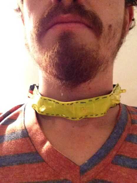Un collar simple con tres luces LED, arandelas, plástico, cintas e hilo conductor. El collar es una buena introducción a los circuitos.Materiales:Surtido arandelas (encontradas en el garaje)dos de la parte transparente de epoxycintabolsa blanca de pl