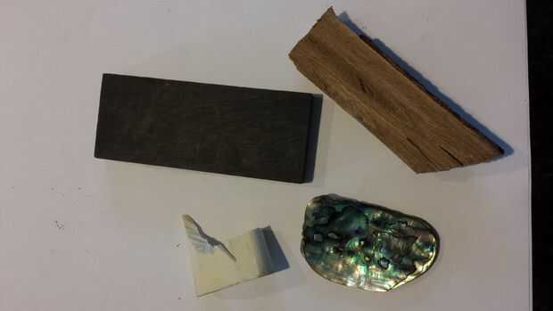 He comprado un montón de espacios en blanco de ébano con el embarazo de nuestro primer hijo. El embarazo de nuestro segundo hijo comenzó mientras vivíamos en Samoa. Hice varios collares de hueso mientras que allí, por lo que se trata de algunos de los huesos sobrantes de esos proyectos. La cáscara del Paua era compra en Nueva Zelanda mientras que visitamos allí. Collar de nuestro tercer hijo fue mi primer intento en la cáscara de Paua, ébano y hueso embutido y millones. La madera color de rosa vino de la primera rosa de mi esposa y juntos compré poco después de casarnos. Nos mudamos de esa casa cuando nos mudamos a Samoa. Sin embargo, hemos podido volver años más tarde y (con permiso) desenterrar la rosa puesto que nos dimos cuenta de que realmente no habían sido atendidos. Usé una pequeña sección de uno de los tallos principales que habían muerto. Estos materiales son todos para agregar significado adicional para el collar.