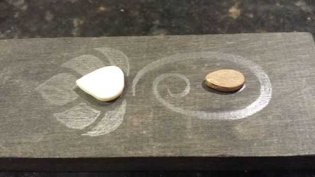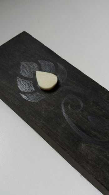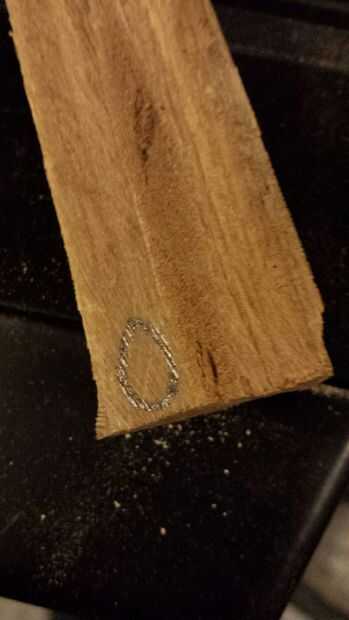 Una vez que las formas fueron cortadas, puso hacia fuera en el renglón de ébano. Esto me dio una mejor idea del tamaño y ajustar el diseño ligeramente. Entonces remonta los cambios pequeños en la madera.