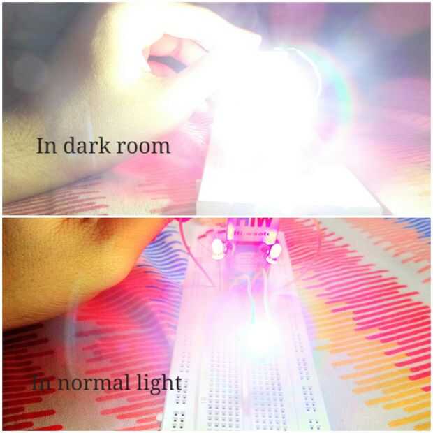 También se puede ver la diferencia entre la luminancia de led en condiciones normales de luz y oscuridad de la habitación.