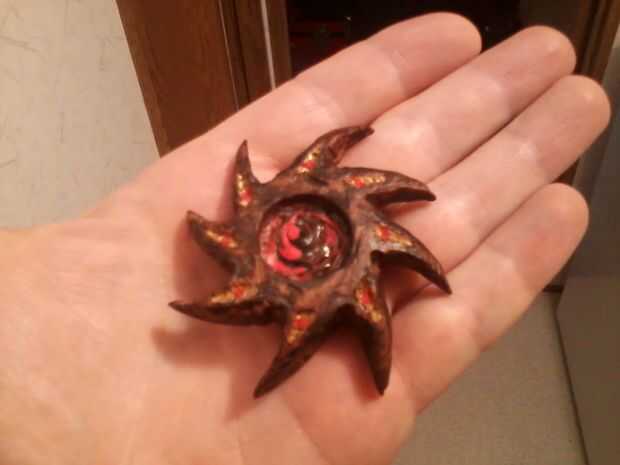 Ahora estaba listo para mi pedazo de la mancha. Utilicé miniwax prestain & cruce toda la pieza en y limpiar el exceso con un paño. Permitió unos 5-10 minutos para la prestain en remojo luego utiliza manchas de miniwax roble gunstock & había sumergido toda pieza en y retirar el exceso con trapo. Dejar que la mancha seque durante la noche y al día siguiente utiliza pintura acrílica para añadir el color a las hendiduras y espiral del brazo. Dejo esta noche a la mañana ya que la pintura era gruesa para hacer el efecto de espiral del centro y quería asegurarse de que estaba seca antes de revestimiento en poliuretano integral miniwax.