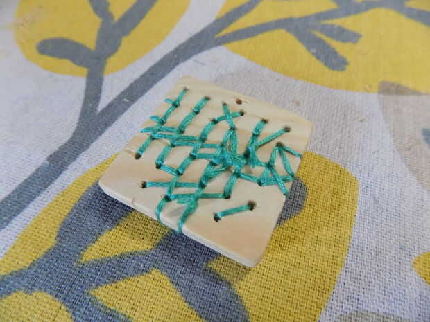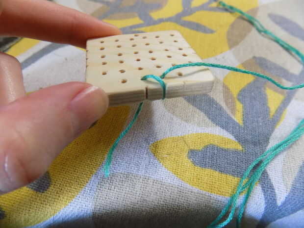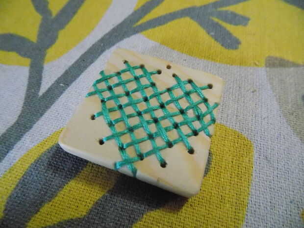 Durante muchos años quise probar a bordar en la madera pero no me gustó los nudos en la parte trasera. Entonces se hizo realmente popular y ahora usted puede comprar varios colgantes con orificios para el cambio: colgante de madera con pespuntes de a