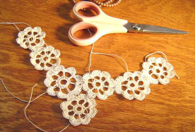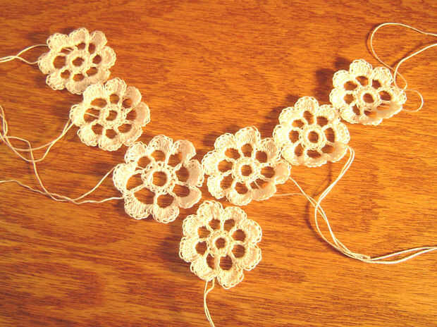 Diseñar medallones en un arreglo que más le convenga y utilizar el hilo final para virar las piezas juntas en la parte posterior.