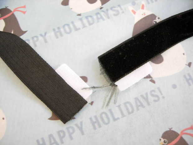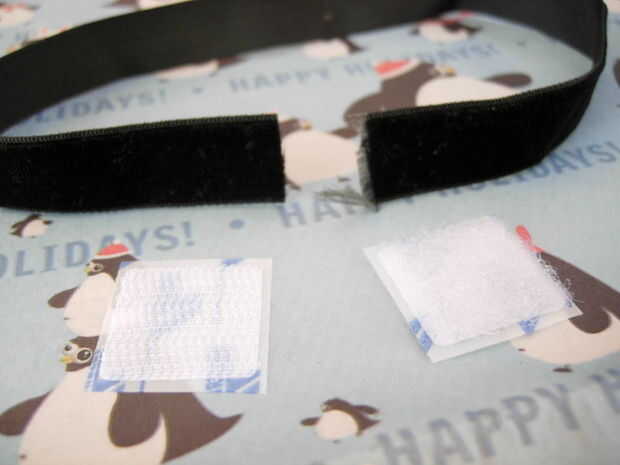 Recorte extra velcro o cinta y guardarlo para otra cosa si quieres.