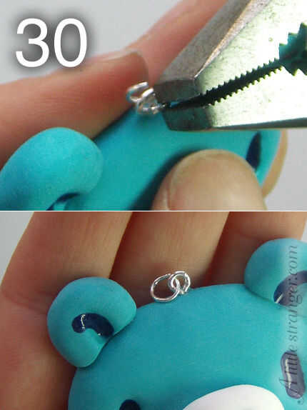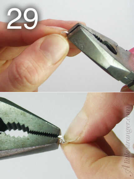 29) abrir el anillo del salto. El anillo se divide y que agarre una media entre los dedos y con tus pinzas, gire suavemente el anillo abierto.