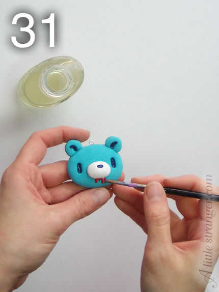 31) laca el splat sangre. Dejar secar durante mucho tiempo como se indica en la botella (generalmente una hora o así) una vez enrosque completamente seco en su collar elegido y todo listo!!