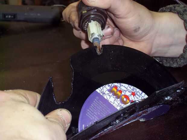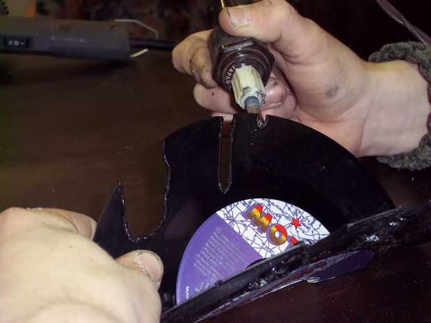 Es útil tener la estufa de leña muy caliente. De esa manera hay un corte más suave. Lo que quieres hacer hacer "U" en forma de cortes. Hice dos en cada lado del disco.