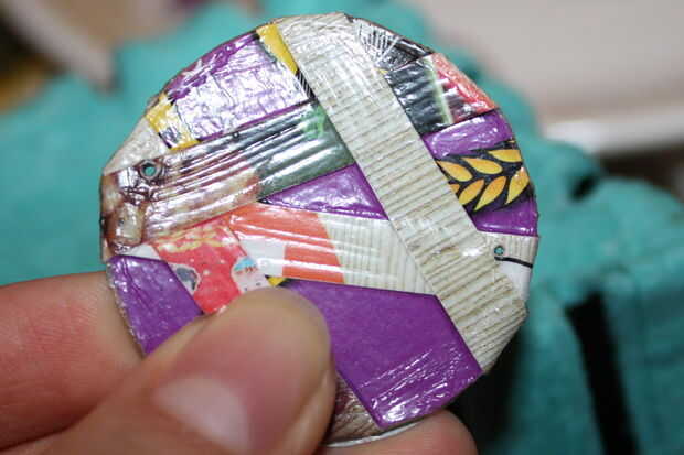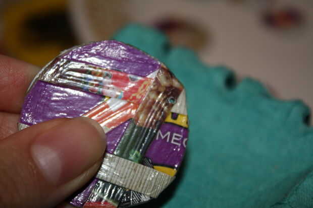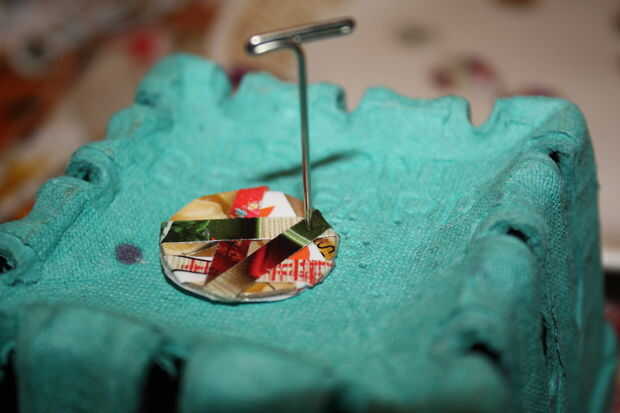 Pinchó los discos en un recipiente de frambuesa viejo, parecido al papel, pero hay muchas otras cosas que usted podría utilizar, como una esponja, o una revista. Cualquier cosa que usted puede poner pequeños agujeros en funcionaría, no el piso de madera o una tabla de lavar.