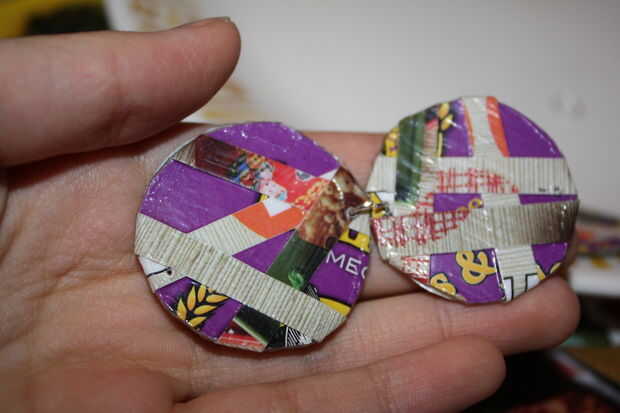 Una vez hayas abierto tu anillo del salto, enroscar el disco más grande. Este será el centro de su collar. Luego añadir uno de los discos más grande siguiente. Los dos lados con el mismo patrón deben cara. Cerrar el anillo del salto.