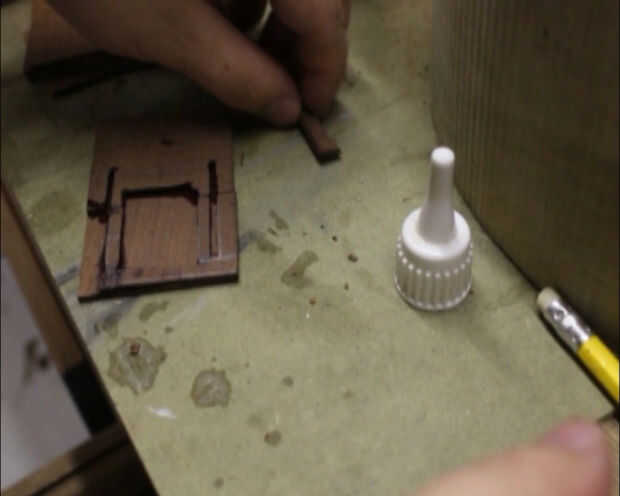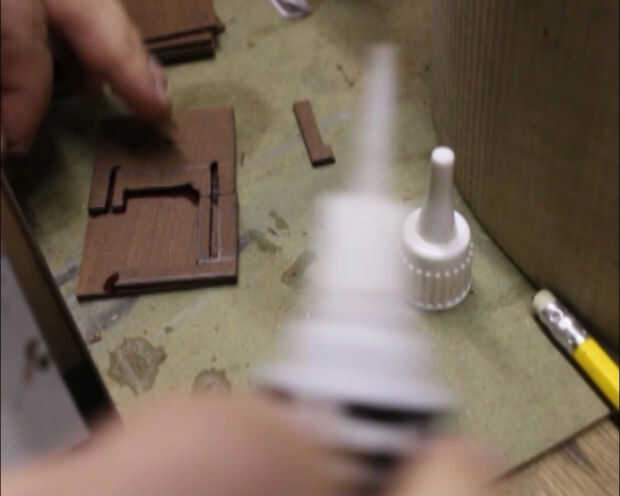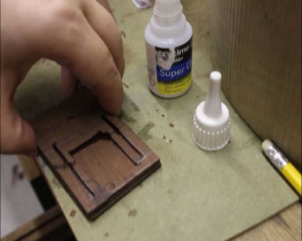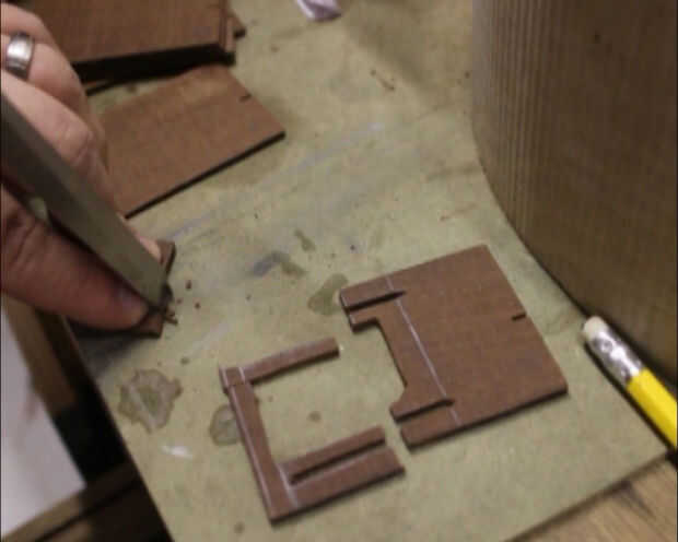 Pegué las paces que corte a la tarjeta de madera que vino debajo de la pila utilizando las dimensiones de las tarjetas como una práctica guía de donde debo línea hasta.
