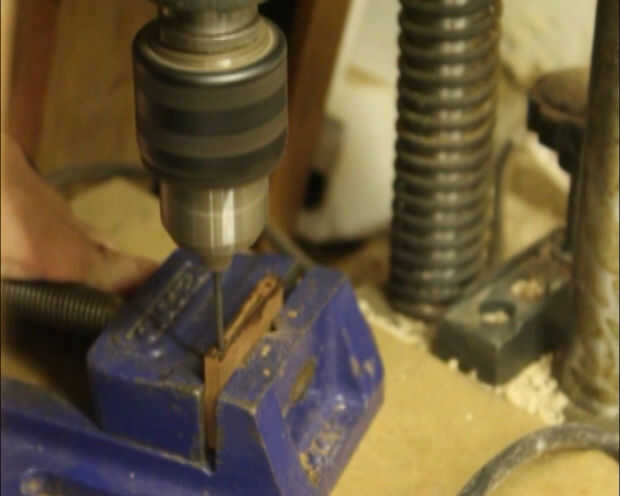 Su probablemente no es necesario porque hacíamos la sierra canales para la cuerda de cuero entrar pero encontré hacer los agujeros un poco más amplias con el taladro no dolía. Los agujeros en la parte superior idealmente deberían ser un poco más grandes para poder pasar el cordón de cuero.