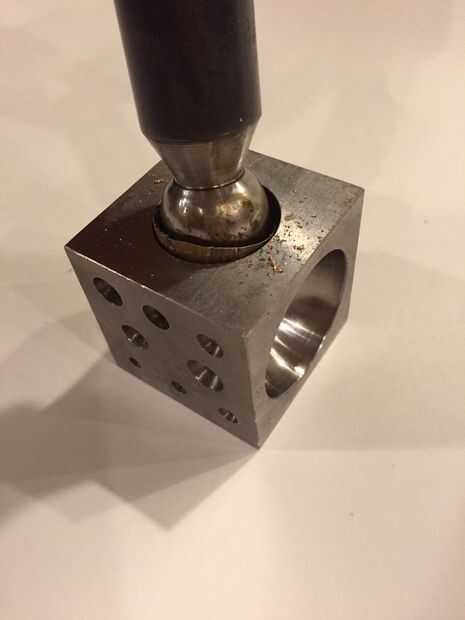 Use un dapper para aplanar los bordes de los blancos de la tapa de botella convirtiéndose en una cúpula