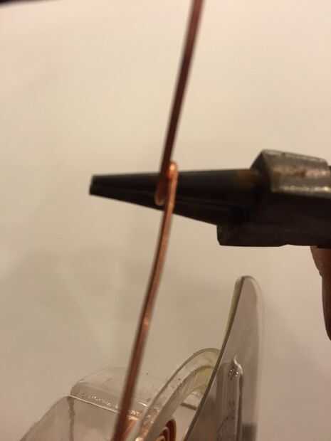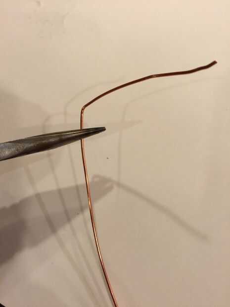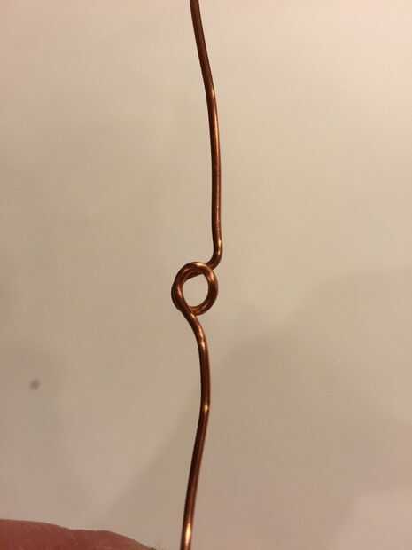 De 3" de un extremo doblar el alambre en ángulo recto y continuar hacer un ciclo de