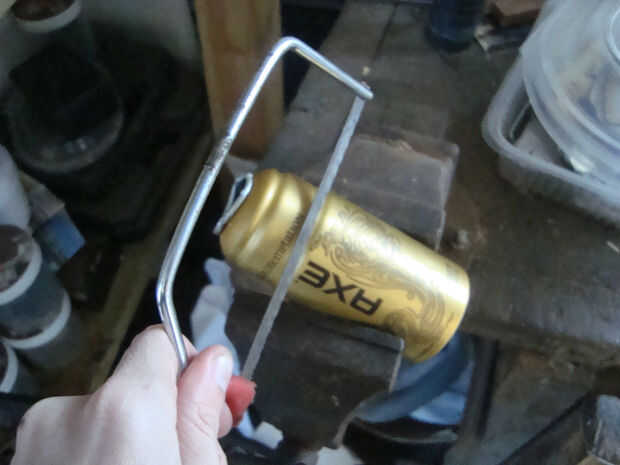 luego quité la puntura de una lata de desorante y utilicé una pequeña cierra de mano para abril la lata.