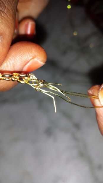 Inserte la cerradura del engranaje en las 3 cuerdas para hacerlo en una sola cadena. Después de que coloque un extremo del cable de conexión y con los alicates de doblar las tres cuerdas juntas e inserte esas cadenas en eso cerradura del engranaje y presión con fuerza la cerradura del engranaje para hacer las cadenas lo suficientemente fuertes. Tenga cuidado mientras presiona duro el bloqueo de cambios porque a veces mientras presiona con el cable de cambios de alicates podría cortar en pedazos.