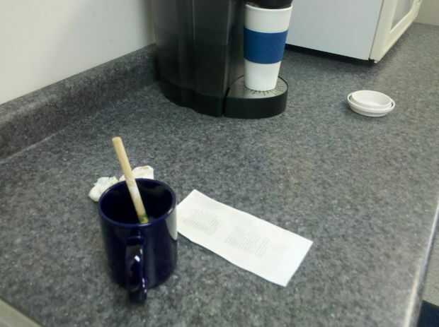 Una vez que fue impreso me lo llevé a la sala de descanso y hace un café.