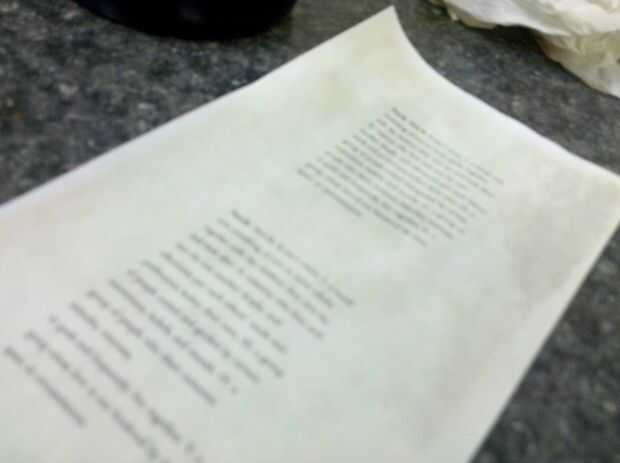No en serio. El papel era blanco brillante y que tenía que hacer algo al respecto. Vierte un poco de café en una taza... y me bebía el resto. He utilizado una espuma a cepillo el café sobre el papel. Lo dejo secar entre cada capa para que no se demasiado mojado y empapado. Aún rizado un poco en los bordes, pero en su mayor parte es se quedó bastante plana. El resultado final fue un bonito "envejecido" buscando la definición del diccionario.