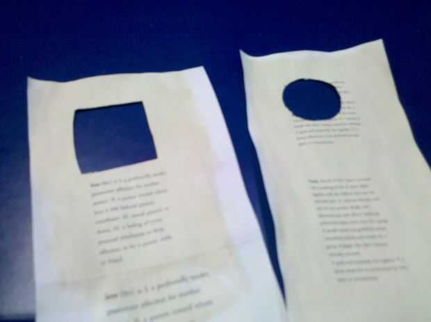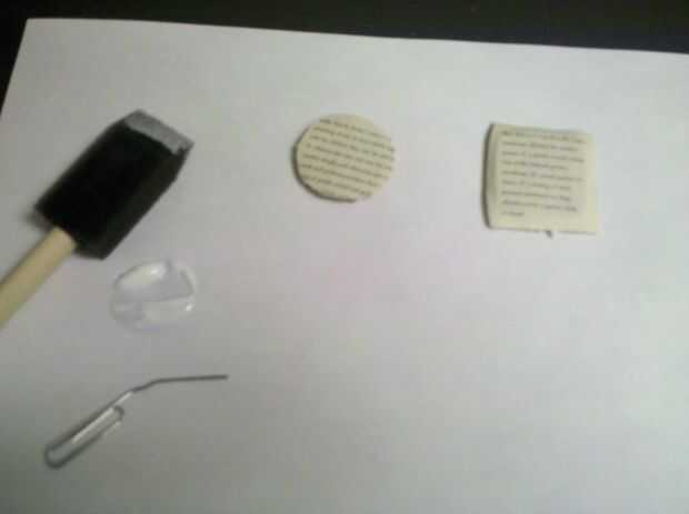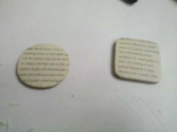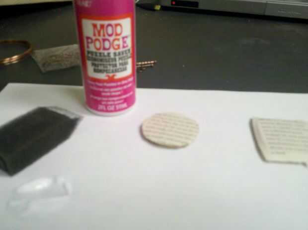 Con un cepillo de espuma (vino con la botella de modpodge que he comprado) cepillo de la cola de saver de rompecabezas en la parte posterior de tu colgante y presione el respaldo en su lugar. Asegúrese de que cubre la espalda entera antes de poner el respaldo en, pero no extenderlo demasiado gruesa. Deja secar un poco y luego recortar cualquier exceso de los bordes y perforar a través del papel donde se perforó el agujero.