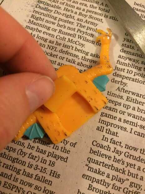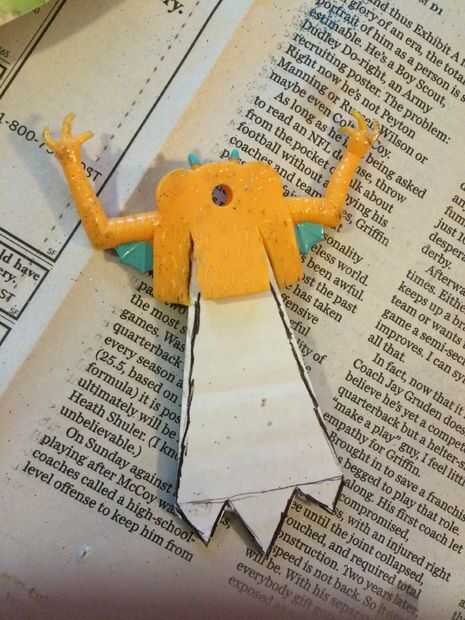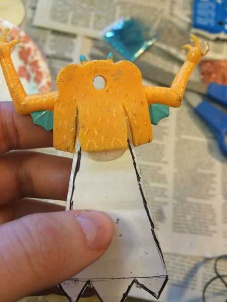 Coloque la parte superior de la forma en la tapa de la clave para que el brillo de la forma es en el mismo lado que el frente o la cara del monstruo. Asegúrese de no bloquear el agujero de llavero de la PAC clave (esto es donde estará el anillo del salto!).