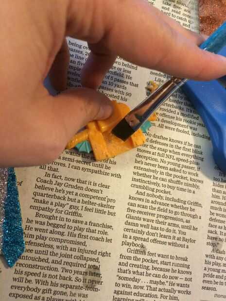Poco uso de pegamento en cola la tapa de la llave aleta sobre la forma.