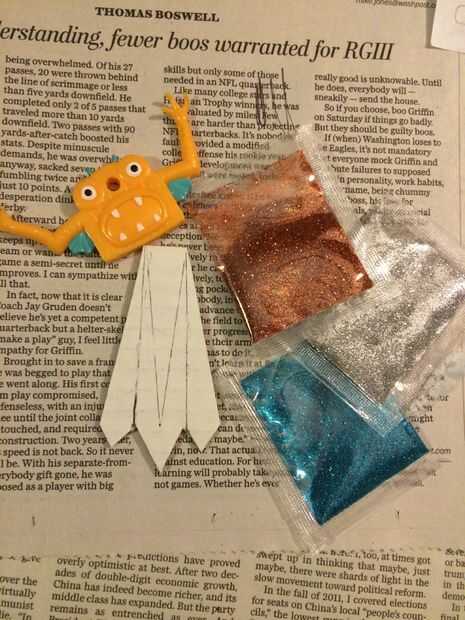 Ver la imagen para ver qué secciones decidí hacer. Elegí teal glitter para el exterior, plata para la sección media y cobre para el interior sección.
