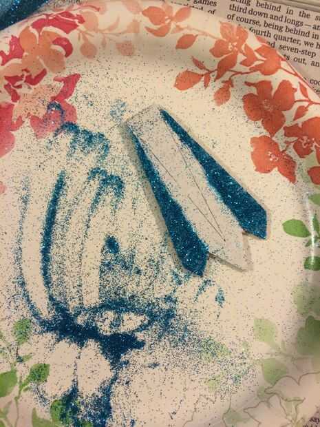 A continuación, espolvorear glitter que eligió sobre las secciones pintadas de la forma.