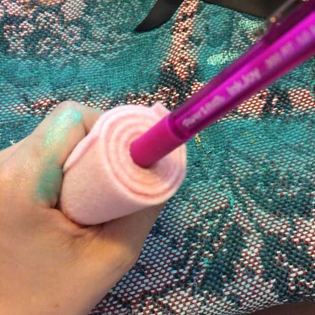 -usar el lápiz para hacer un espacio en los extremos del fieltro del rodillo
