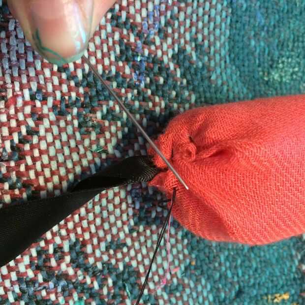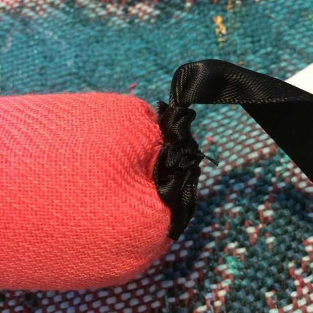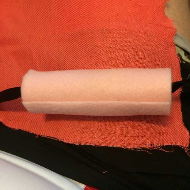 -coser la tela alrededor de su barra de fieltro. Asegúrese de que cubre los extremos de la barra de fieltro también. no queremos ver ningún sentido!