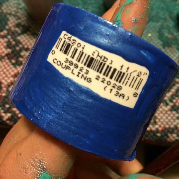 2) pinta la primera pieza de PVC en todas partes excepto el código de barras en su color más oscuro.