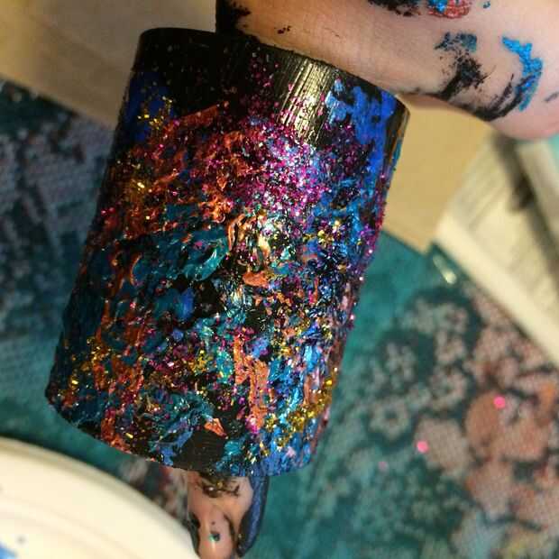 6) repetir 2-4 con una toalla de papel nueva para los restantes colores de pintura. Usé un color más (cobre) aunque apreté oro así (decidí usar glitter Oro en lugar de otro además de mi brillo rosado.