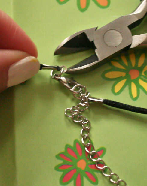 Finalmente, para acabar con su collar, tomar la otra parte del broche de su collar (con la pinza de la langosta en el extremo) y de cerca en el otro extremo de su cable de sedoso. Y ya está!
