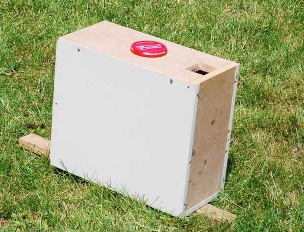 La parte inferior de la parte delantera tiene una abertura (6 cm x 6 cm) que permite a las abejas a llegar a su casa.
