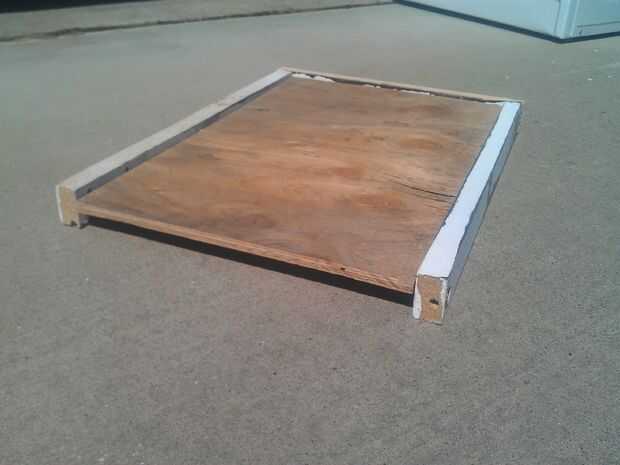 Para mayor flujo de aire corte un agujero cuadrado en el tablero base y grapa 1/8" tela metálica a la Junta. Esto se evita que las abejas se escape, pero permiten ácaros al caer a través.