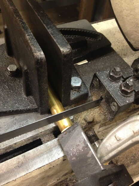 Adición de un disco de latón en la parte posterior de las piezas les da un peso fuerte agradable (también latón y nogal se ven hermoso juntos). Utilizando una sierra de cinta horizontal hizo el trabajo rápido de cortar mi 3/4" latón redondo en pedazos 1/2" de largo. Luego usted probablemente querrá utilizar un archivo para desprender cualquier borde filoso causada por corte.