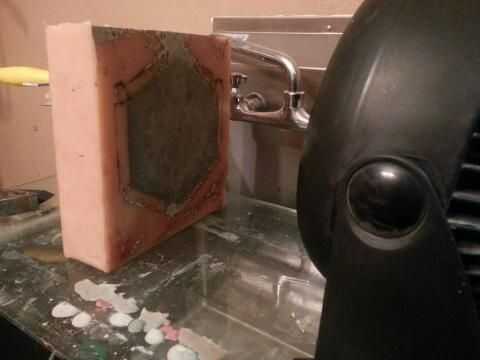 Cuando el molde esté completamente seca, usar un desmoldante universal otra vez para dentro del molde del caucho de hormigón. Dejando ese conjunto durante unos 5 minutos. Utilizando una mezcla de reparación parche concreto es lo que uso a continuación. Hasta que es un puddling como grueso con él. En el molde y luego un poco de shacking el molde a nivel buscar la salida concreta para un fondo liso, y que le ayudará a salir burbujas de aire. Dejaría el molde fijado para una hora. Entonces si el concreto era lo suficientemente sólido, se incline hacia arriba y tienen un ventilador en él por las próximas 2-3 horas. Después de que la cantidad de tiempo estaría listo para sacar del molde.