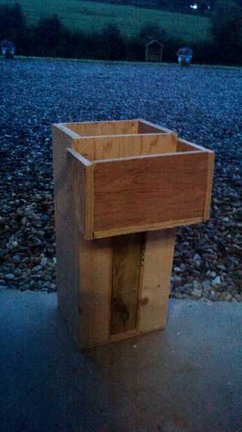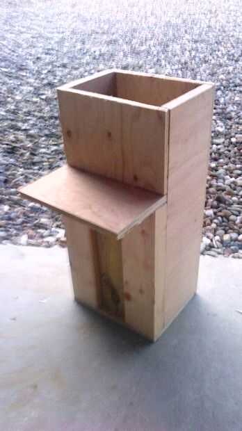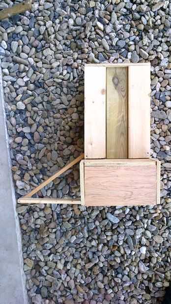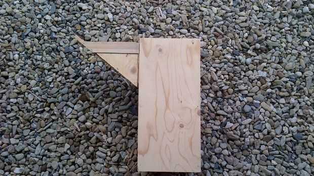 Ahora el pequeño estanque cosita, tomar una tira de madera sobre dos veces el ancho de la colmena y fíjelo a la parte de atrás de la maceta. Ahora toma un trozo de madera tan amplia como su colmena y fije el extremo de la tira de madera. Finalmente añadir los lados y rellena los huecos con pegamento caliente.