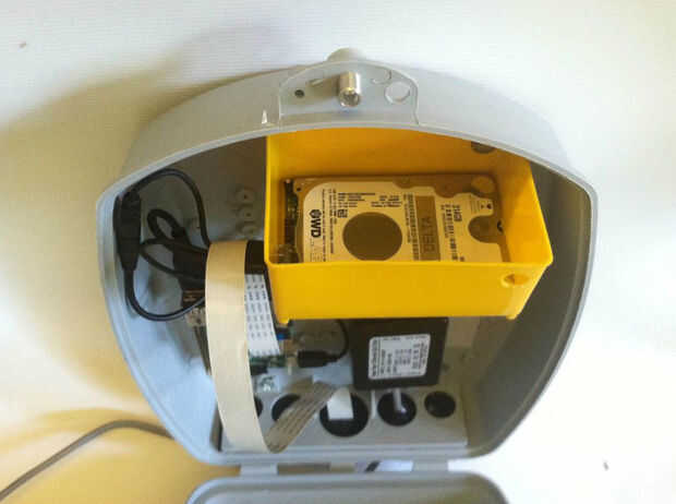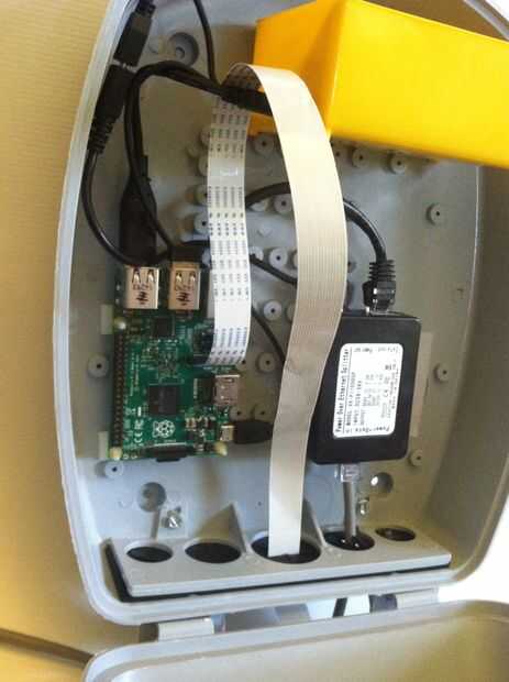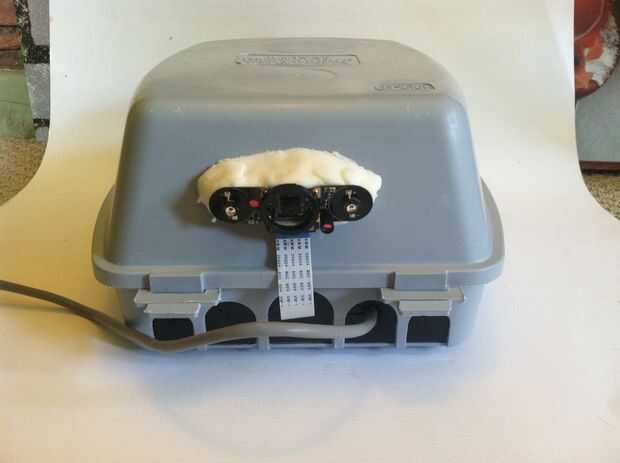 La cámara se coloca utilizando "Oogoo" (o sellador de silicona como normalmente le llamamos, mezclado con almidón de maíz). El hack de masilla es mi solución ir a improvisado de impermeabilización. Todavía para hacer - construir una cáscara alrededor de la cámara para guardar el agua hacia fuera. No será difícil. Te cuenta que la cámara apunta hacia dentro un poco. Desea cubrir la entrada a la colmena y las abejas que entran desde arriba, así como de la zona de aterrizaje frente a la entrada.