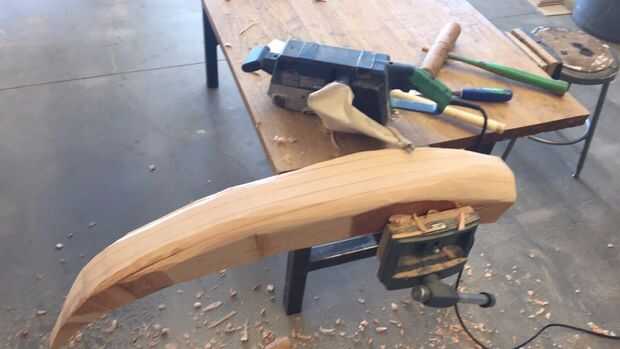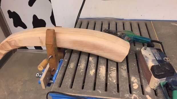 La clave para conseguir una forma estaba contento con fue el uso de dos de mis herramientas favoritas: una lijadora de banda 3 x 21 pulgadas Bosch y lijadora de banda Makita 1.1/8 x 21 pulgadas. La Makita rasgó la madera, especialmente en el interior curvas eliminar cantidades significativas de material mientras que el Bosch dio todo una suavidad consistente eliminando cualquier chuletas.