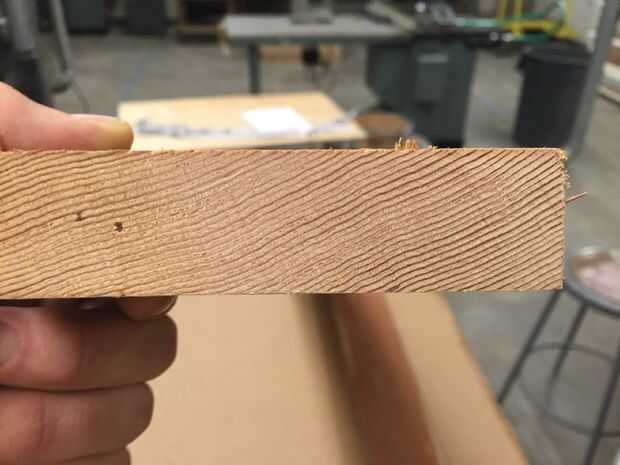 Para este proyecto usé tres 4.5 "x 1'' x5.5' tableros de abeto de Douglas. Estas placas provenían de las gradas del viejo en el gimnasio de la Universidad que asisto. Cuando las gradas fueron arrancadas alguien tuvieron la visión de futuro para salvar a la hermosa madera para futuros proyectos. Como puede ver, esta madera proviene de rodales con un grano muy apretado y absolutamente sin nudos para encontrarse. Hubo un par de orificios para los tornillos y los números de asiento pero estos fácilmente se evita o cepillar.