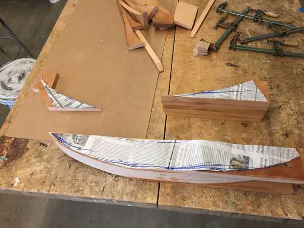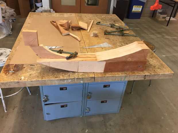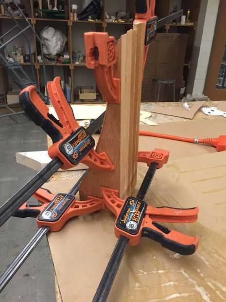 Antes de pegar los tres componentes principales usé un avión de la mano y lijadora para aplanar los lados que se pegaron juntos hasta que fueron al ras uno con el otro.