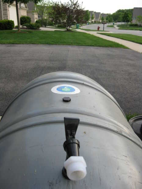 Colocación de un barril de lluvia americana gran con una nueva espita resistentes. (1 / 12 paso)