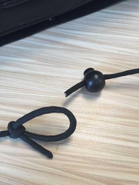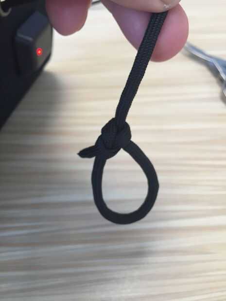 En el otro extremo del panel, tomar los restantes dos extremos sueltos de paracord e inserte cada extremo suelto a través de la cerradura de la cuerda.