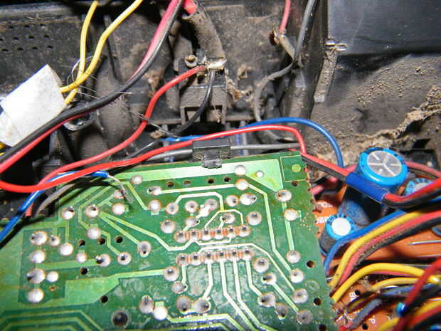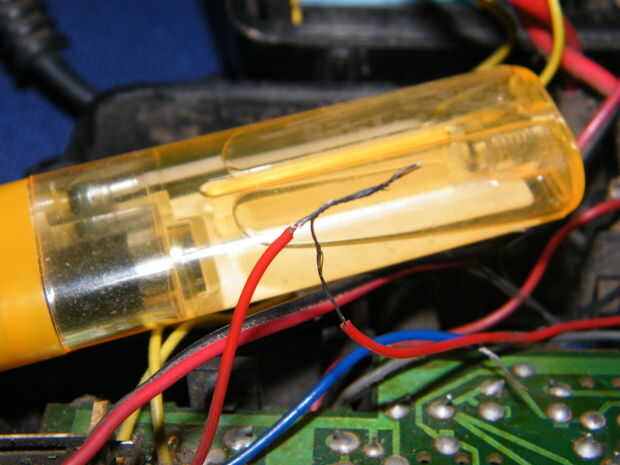 He desenroscado los cables y conectar el cable original (#5). He probado otra vez y no había ningún sonido cuando no había ningún poder pero cuando conecté el poder se volvió al vieja y familiar, ruido de estática.