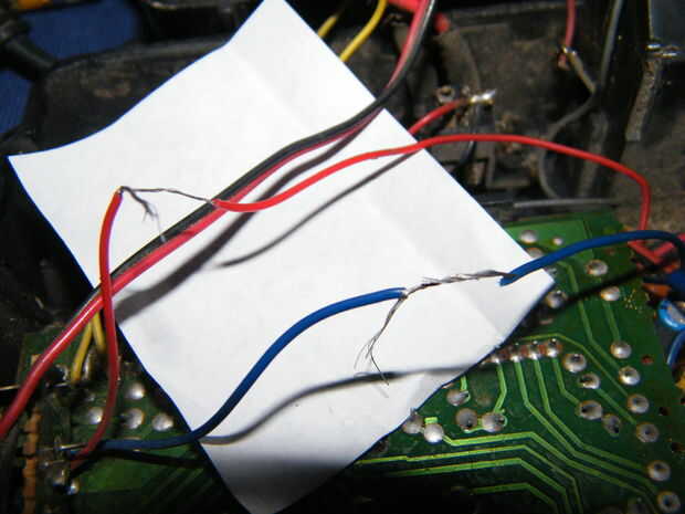 Así que corte alambre #5, peladas lo posterior para exponer el metal de los cables y conectado a los alambres de metal del cable de conector de 3,5 mm.