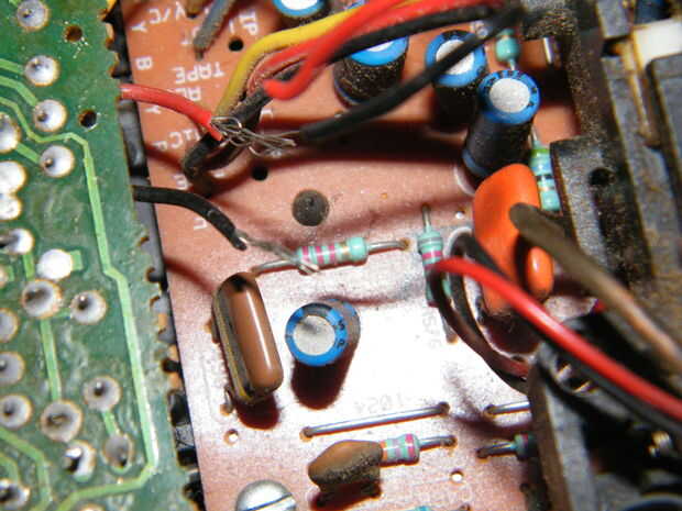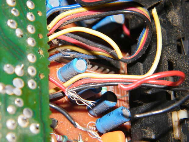En la foto se pueden ver el corte y pelado de los cables rojos y negros.