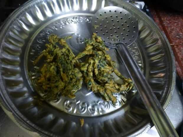 Bajji son una especie de buñuelos fritos profundos y a menudo se hacen en casa para tenerlo como un bocado de tiempo de té. Para hacer el bajji mirchi, Bajji chiles se sumergen en la mezcla de harina de gramo y crujientes fritos a la perfección.Tan l