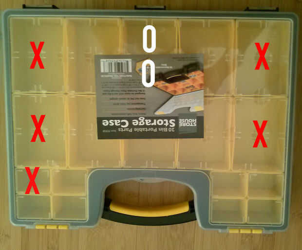 Eliminar todas las casillas marcadas con una X. luego mueve dos casillas con de O en el espacio mediante la eliminación de la caja inferior derecha.