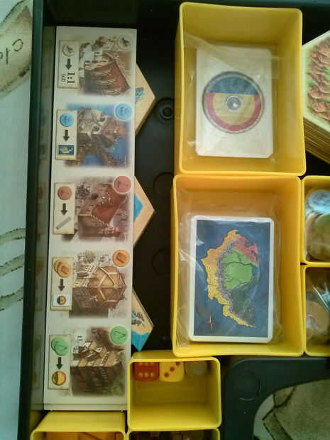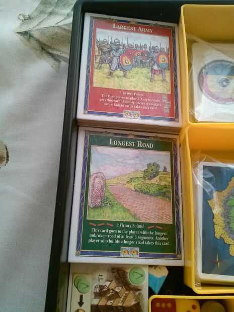 Después de esto, tarjetas de jugador los costes de construcción, ejército y camino de tarjetas pueden ser colocadas sobre estas con un montón de espacio.